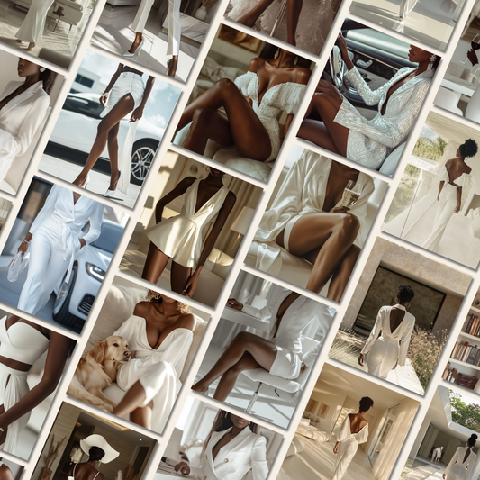 Melanin Women in White Aesthetic Stock Image Bundle